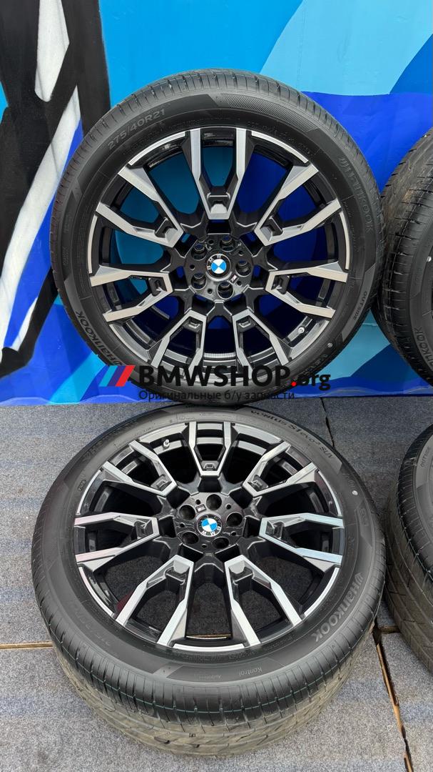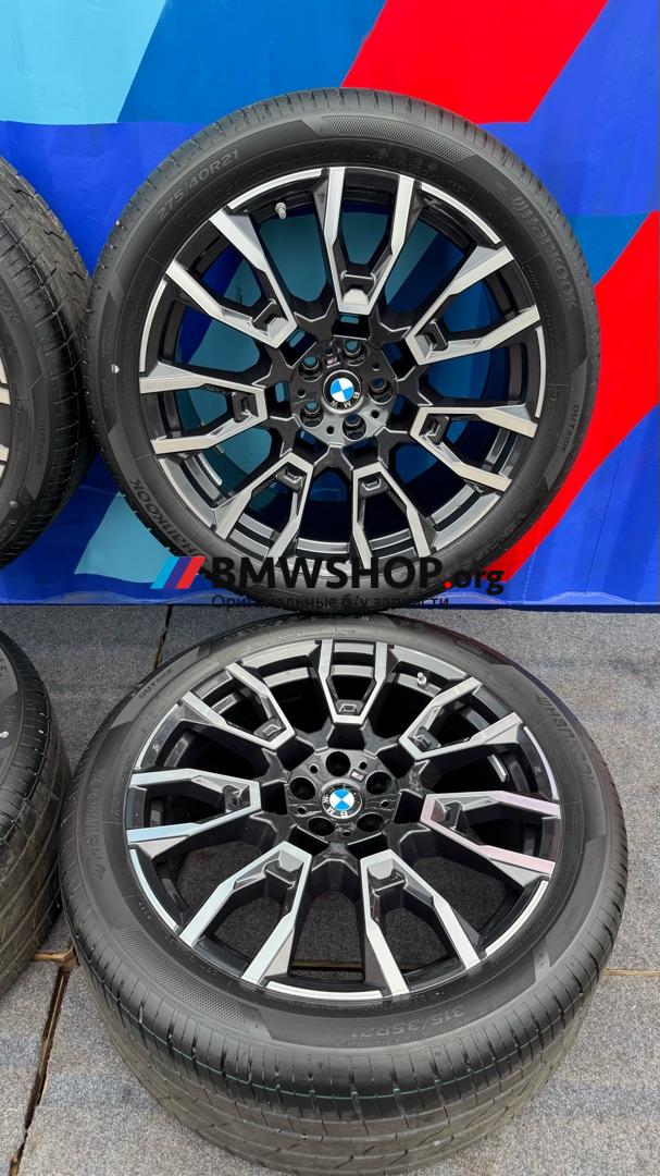 В наличии оригинальные литые диски R21 BMW 915 M стиль с вылетом ЕТ37 (9,5*21) / ЕТ43 (10,5*21) с летними шинами 275/40/21 и зад 315/35/21 Hankook VENTUS S1evo3 SUV 20 неделя 23 года. Готовый комплект для установки н