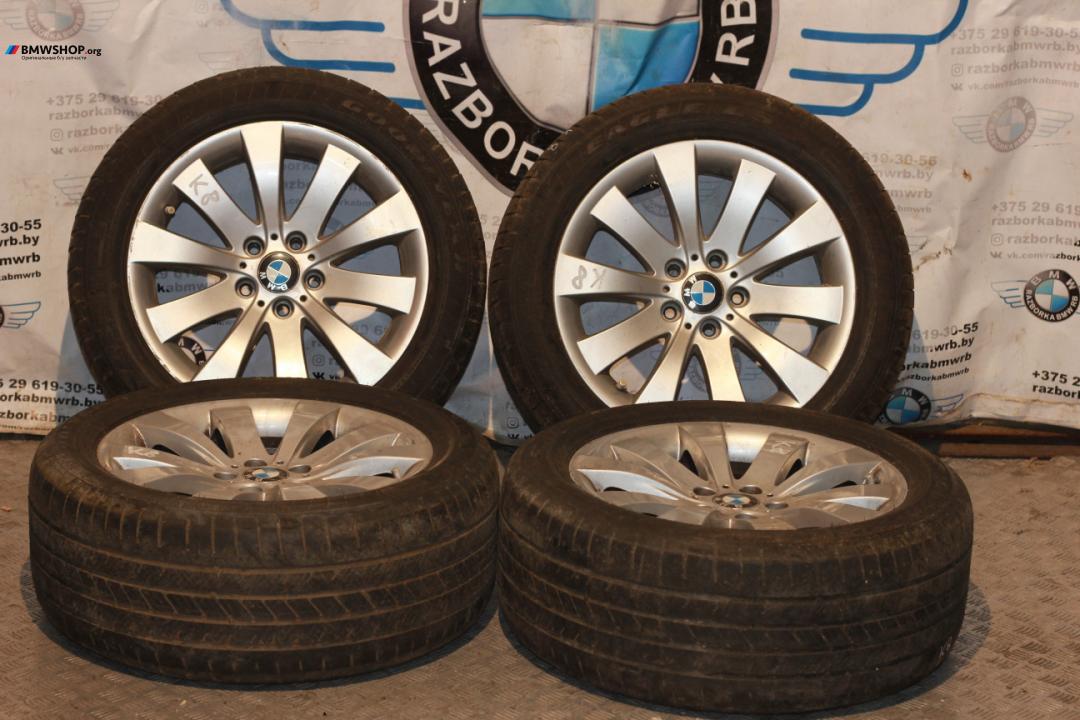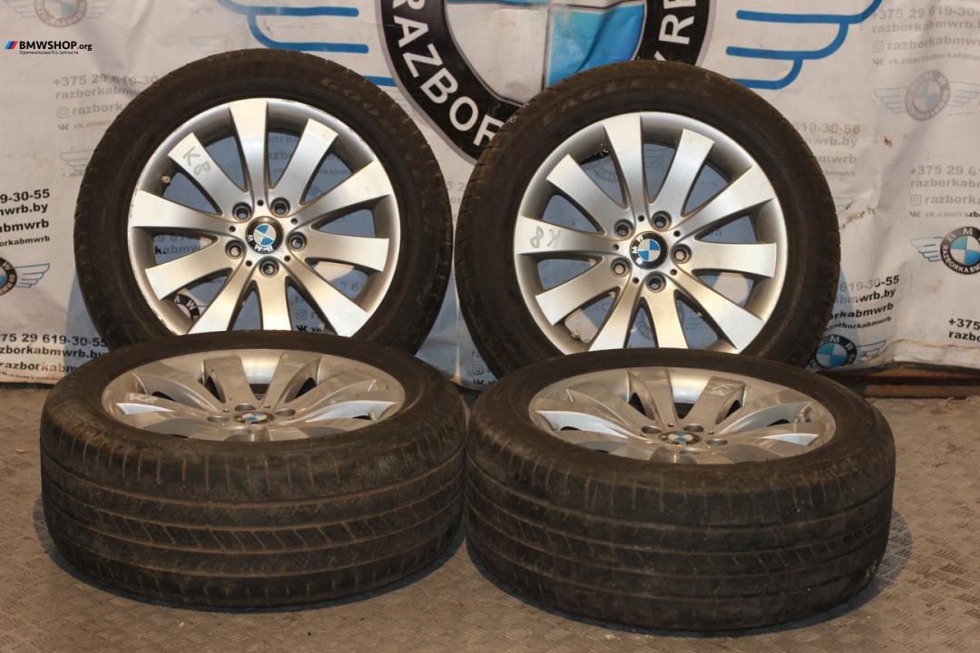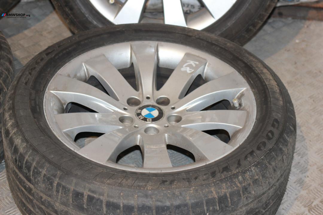 В наличии оригинальные литые диски R18 БМВ 250 стиль с вылетом ЕТ30 (8*18) в хорошем состоянии с парой летних шин 245/50/18 Goodyear 17 года с хорошим остатком.